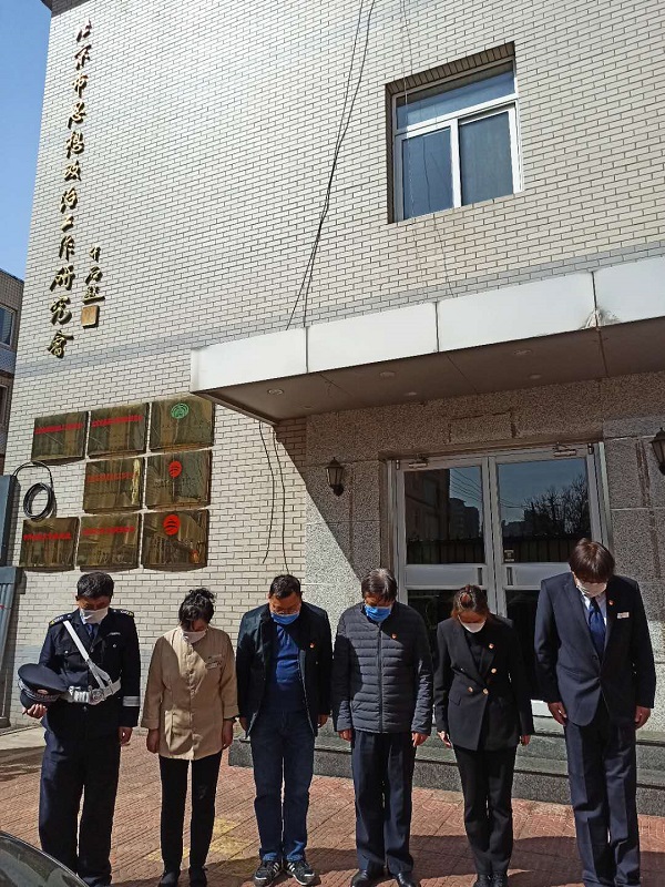 2020年4月4日上午十点,市政研会带班领导携值班党员同志及相关工作人员向抗疫中牺牲的烈士和逝世的同胞默哀!