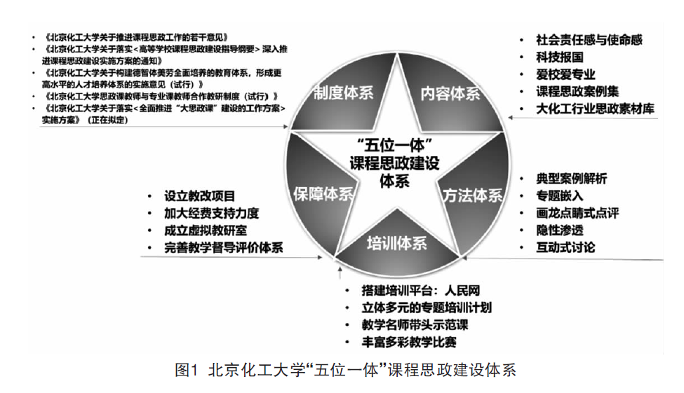 课程思政作为一种新的教育理念,在新时代高等教育领域产生重要影响。其围绕培养什么人、怎样培养人、为谁培养人这一教育的根本问题,不断推进立德树人理论创新、实践创新、制度创新和文化创新,聚焦发挥课堂教学主渠道作用,寓价值观引导于知识传授和能力培养之中,对培养担当民族复兴大任的时代新人具有重要的战略意义。近年来,北京化工大学认真学习贯彻习近平总书记关于教育的重要论述,深入落实立德树人根本任务,大力加强课程思政建设,探索构建制度、培训、内容、方法、保障“五位一体”课程思政建设体系,推动课程思政与思政课程同频共振、同向同行,努力培养堪当民族复兴重任的时代新人。