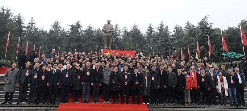 参加研讨会全体人员在毛主席铜像前合影