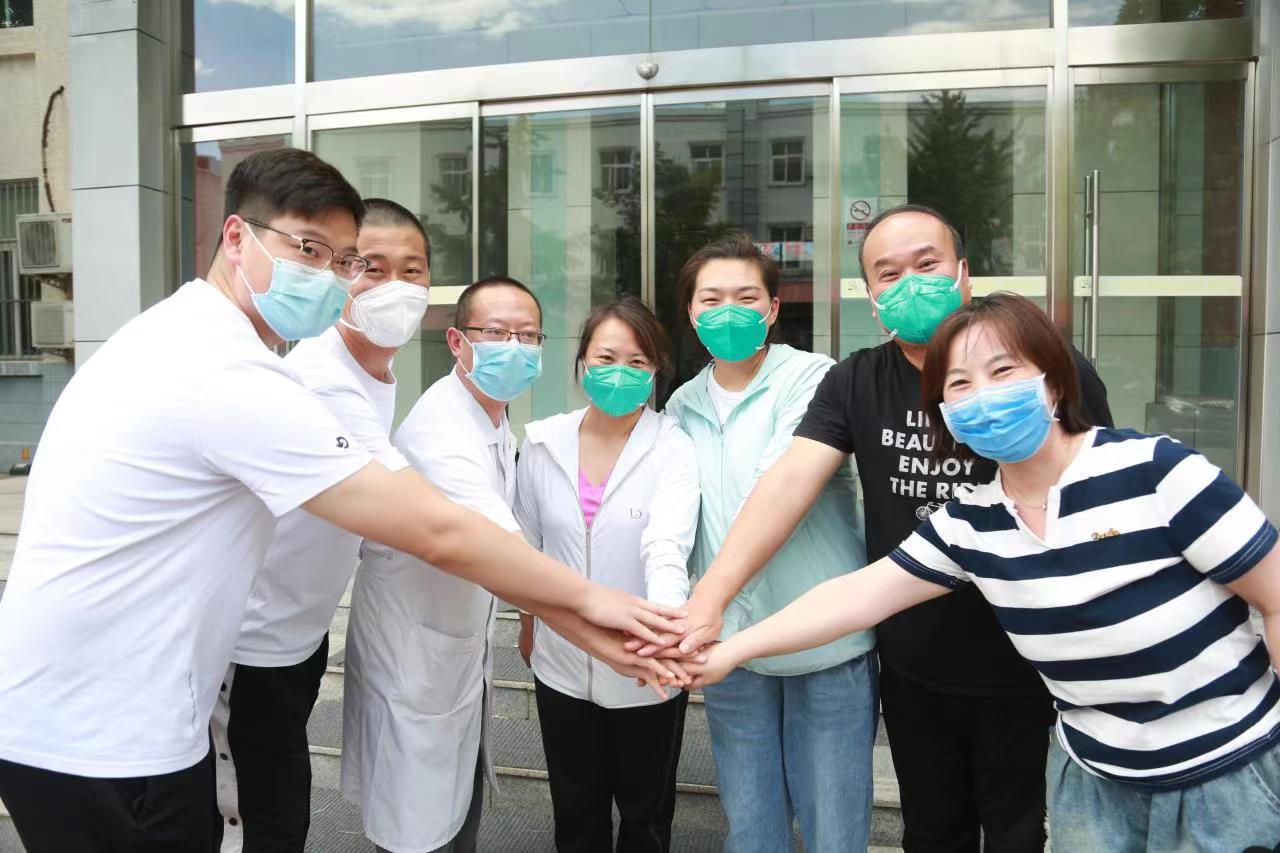 黄翔(左三)在疫情防控一线鼓舞医务工作者