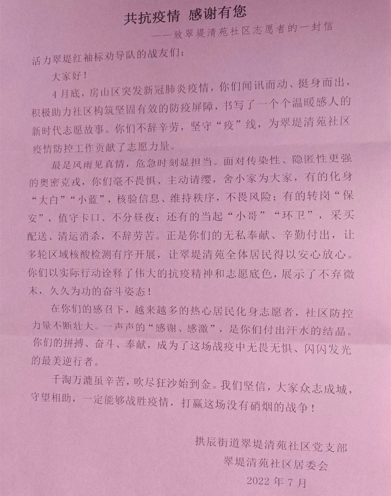 图为市政研会朱丽芳同志下沉社区党组织发来的感谢信