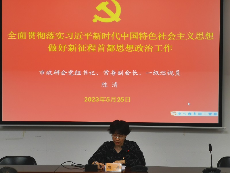 5月25日下午,市政研会党组书记、常务副会长陈清同志讲主题教育专题党课。市委第五巡回指导组林琳、张保华同志参加。