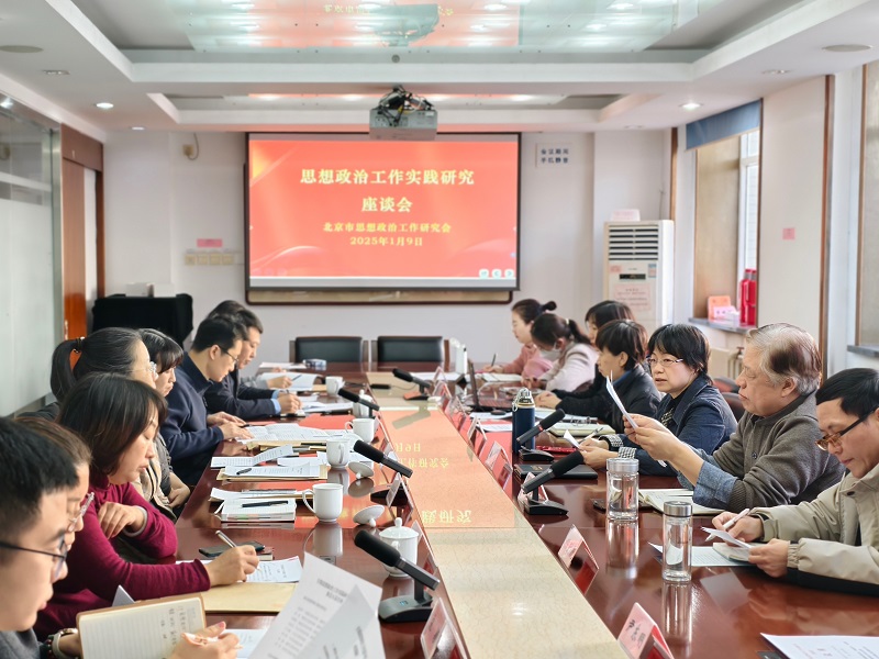 2025年1月9日上午,北京市思想政治工作研究会召开首都思想政治工作实践研究座谈会,东城区、朝阳区、海淀区、丰台区、大兴区等区委宣传部分管思想政治工作的同志参会。与会人员围绕2024年本地区开展思想政治工作创新亮点和取得的成效、面临的困难挑战,以及2025年工作思路和要点展开交流,并对市政研会2025年工作提出意见建议。会议由市政研会党组书记、常务副会长、一级巡视员陈清同志主持。