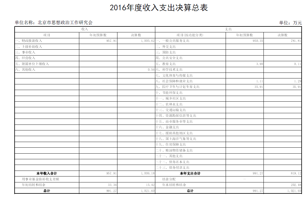 2016年结余分配 0万元,年末结转和结余202.48万元。
