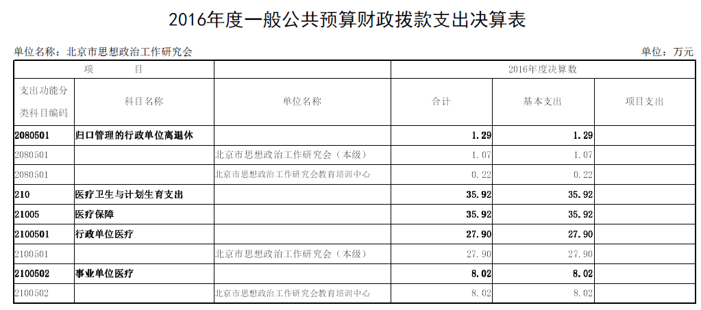 “医疗保障”2016年度决算35.91万元,与2016年年初预算数持平。