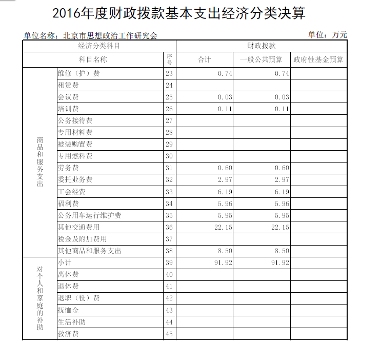 “进修及培训”2016年度决算0.11万元,比2016年年初预算减少3.79万元,下降97.18%。主要原因:我会认真贯彻落实中央、市委市政府有关厉行节约精神,充分利用单位内部场地,减少了外出培训支出。