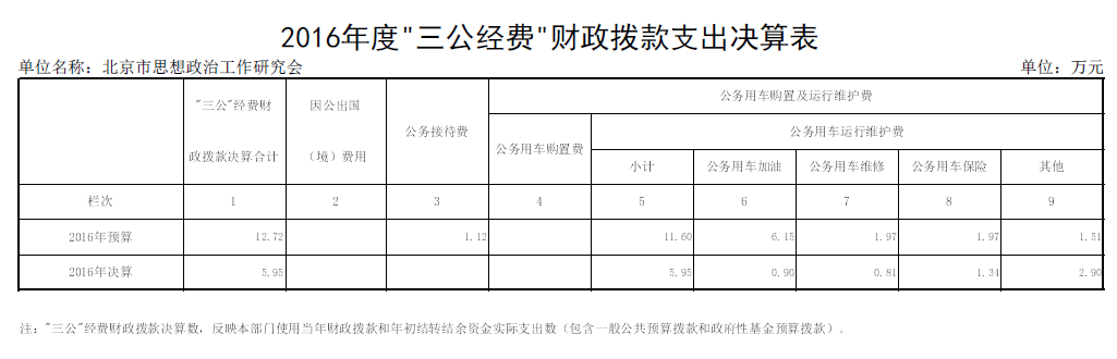 2016年“三公”经费财政拨款决算数5.95万元,比2016年“三公”经费财政拨款年初预算12.72万元减少6.77万元。其中: