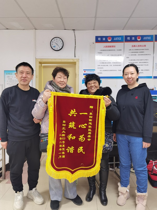 2024年1月,东四街道居民感谢“1+1”微循环治理单元结对干部社工的工作,为社区送上锦旗