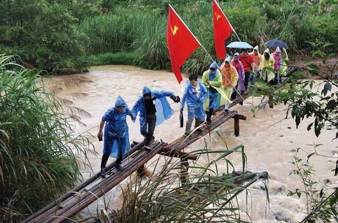 2019年6月11日至8月18日,中央宣传部组织开展了“壮丽70年·奋斗新时代——记者再走长征路”主题采访活动,先后有1300余名记者追随当年红军长征步伐,深入实地采访,累计跨越16000余公里,推出10000余篇鲜活生动、形式多样的报道,网上总阅读量近20亿次。习近平总书记近日对“记者再走长征路”主题采访活动作出重要指示强调,中央宣传部组织开展的“记者再走长征路”主题采访活动,生动再现壮怀激烈、惊天动地的革命故事,对阐释用生命和鲜血铸就的伟大长征精神很有意义。图为6月13日,参加主题采访活动的记者们,在江西于都县祁禄山沿着当年中央红军长征走过的“红军小道”冒雨行进,体验红军穿越深山峡谷的艰苦行程。经济日报记者 刘兴/摄