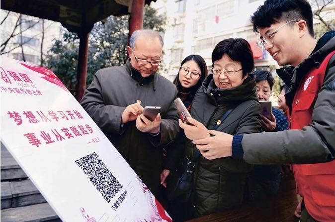 建设“学习强国”学习平台,是贯彻落实习近平总书记关于加强学习、建设学习大国重要指示精神、推动全党大学习的有力抓手,是新形势下强化理论武装和思想教育的创新探索,是推动习近平新时代中国特色社会主义思想学习宣传贯彻不断深入的重要举措。该平台自2019年1月1日上线以来,极大地满足了互联网条件下广大党员干部和人民群众多样化、自主化、便捷化的学习需求。图为2019年2月25日,江苏科技大学志愿者在指导老党员扫描二维码安装“学习强国”手机APP。人民图片供图 石玉成/摄