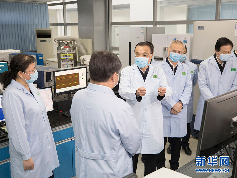 在病原系统生物学重点实验室,李克强详细了解抗病毒药物筛选等情况。得知目前已筛选出药物启动临床试验,并正在研制满足不同临床需求的药物,李克强说,有效药物是打赢这场阻击战的重要制胜武器,是提高患者治愈率、降低病死率的关键,抗疫一线的医护人员和患者对此十分期盼。医药等相关领域科研工作者要与时间赛跑,集中各方智慧,加强与临床合作,深入研究治愈病例的治疗方案,全力开展药品研发攻关。他叮嘱随行有关同志,要对有效药物以及疫苗研制加大财力物力人力等各方面支持和保障。李克强强调,药物和疫苗研制一定要尊重科学、遵循规律,把安全性有效性作为根本标准。有了有效药物,就能给患者带来福音,给群众送上“定心丸”。