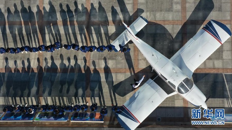 12月17日,河北省唐山市丰润区综合职业技术教育中心飞机维修专业教师在给学生上课(无人机照片)。新华社记者 牟宇 摄