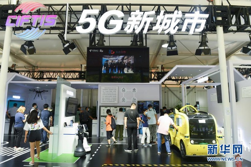 观众在2020年中国国际服务贸易交易会5G通信服务专题展区参观(9月7日摄)。新华社记者 鲁鹏 摄