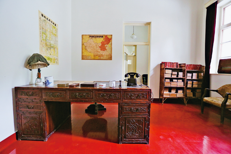 1949年3月25日至9月21日,中共中央在北京香山虽然只有半年时间,但这里是我们党领导解放战争走向全国胜利、新民主主义革命取得伟大胜利的总指挥部,是中国革命重心从农村转向城市的重要标志,在中国共产党历史、中华人民共和国历史上具有非常重要的地位。双清别墅是毛泽东同志当年办公居住的地方,近年来进行了保护修缮,里面办公室、会客室、卧室、饭厅的家具陈设,床上的书籍和墙上的《中国解放区现势图》、《最新北平大地图》等的摆放,都一如原样。图为毛泽东同志当年的办公室。 北京市委宣传部供图