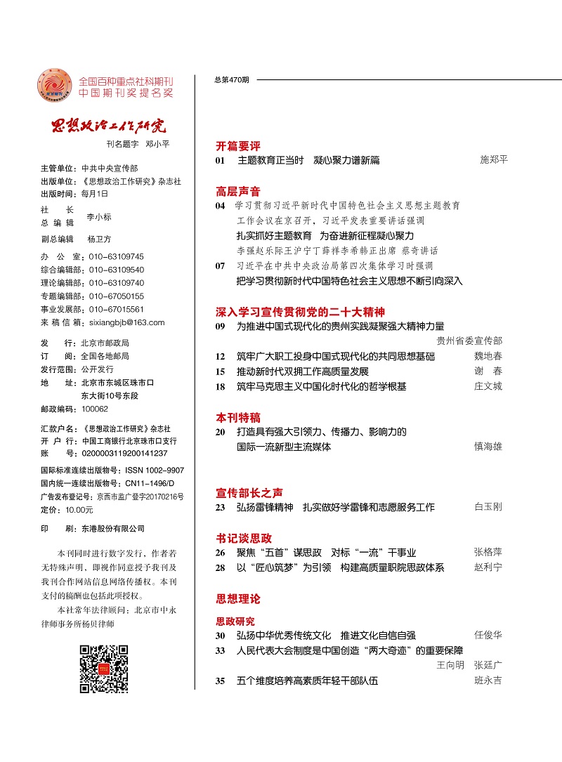 时间: 2023-05-04 [字号: 超大 大 中 小] 来源:《思想政治工作研究》杂志