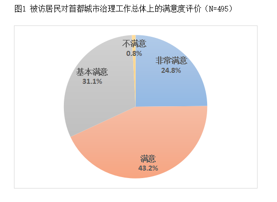 问卷调查显示,有九成多的被访群众对首都城市治理工作总体上表示“满意”(见图1);其中,被访群众对“七有”和“五性”的满意率,均达到九成以上。