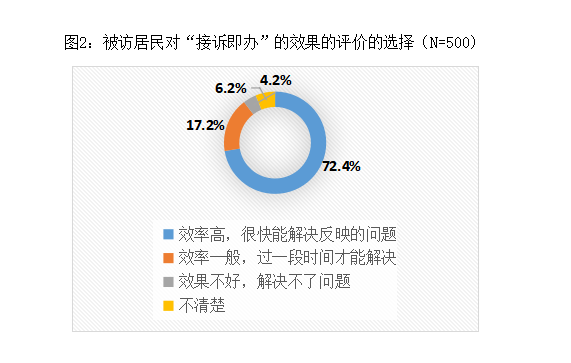 问卷调查显示,有近九成被访群众表示,通过“接诉即办”能够解决反映的问题;其中,有七成以上的被访群众认为,接诉即办的“效率高,很快能解决反映的问题”。
