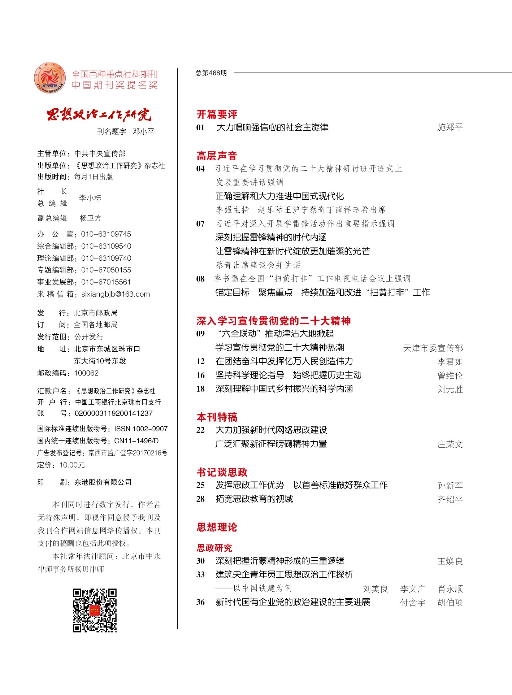 时间: 2023-03-01 [字号: 超大 大 中 小] 来源:《思想政治工作研究》杂志社