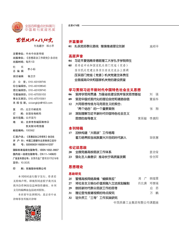 时间: 2023-08-31 [字号: 超大 大 中 小] 来源:《思想政治工作研究》杂志