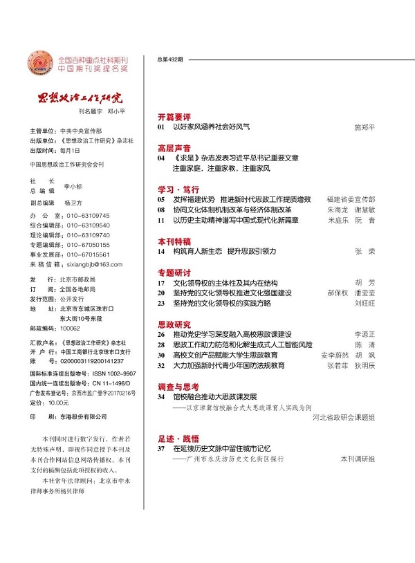 2025年3月1日,市政研会党组书记、常务副会长、一级巡视员陈清同志署名的理论文章《思政工作助力防范和化解生成式人工智能风险》,在中国思想政治工作研究会《思想政治工作研究》杂志2025年第3期公开发表。该文章系市政研会2024年度自研重点课题“发挥思想政治工作优势 防范和化解生成式人工智能风险”研究成果的一部分。陈清同志牵头组成课题组,带队赴北京市经信局、北京信息化协会等单位开展调研,通过座谈会的方式了解生成式人工智能产业发展现状、未来趋势和可能带来的风险挑战,通过线上线下多渠道对北京市机关企事业单位、农村、高校、社区进行问卷调查,了解首都社会各界对生成式人工智能的认知情况,并结合北京实际,就发挥思想政治工作优势、推动生成式人工智能安全向善发展提出意见建议。